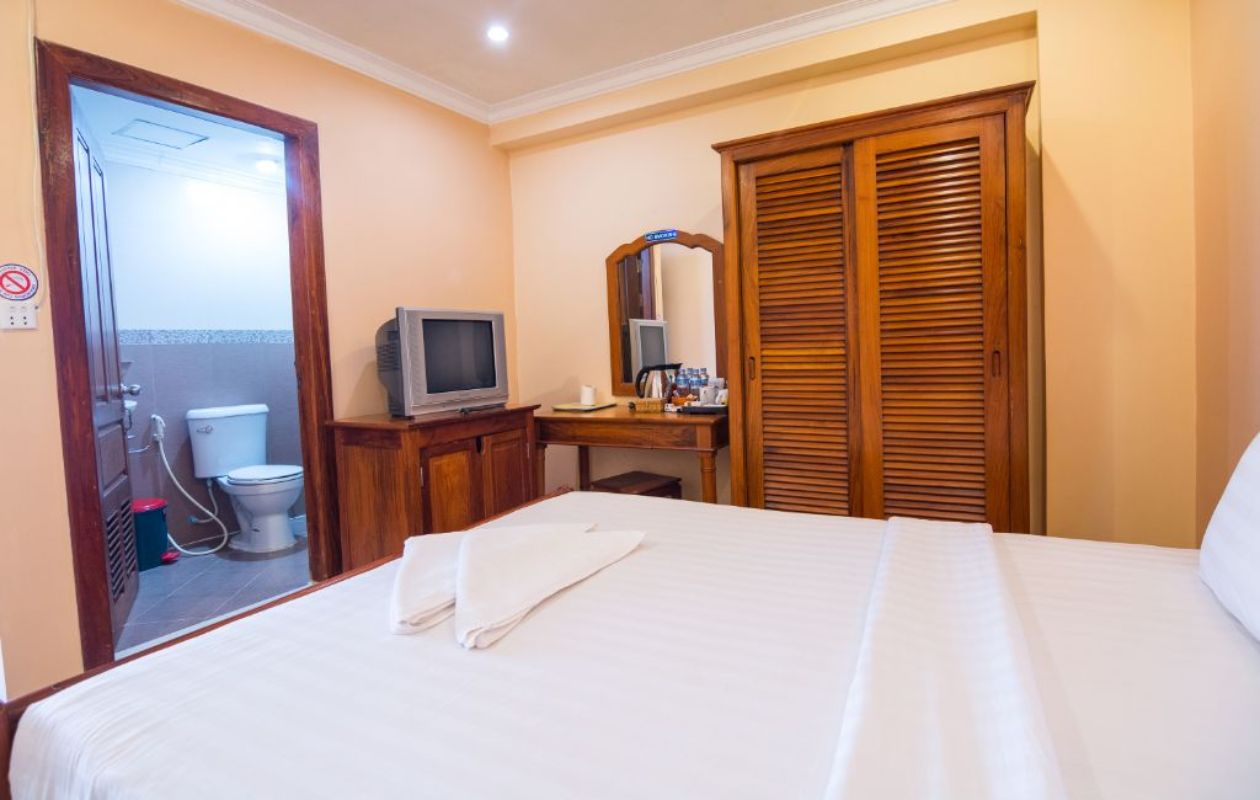 The Deluxe Double Room is (32 sqm2). A simple air-conditioned room with an private bathroom and a seating area. It is fitted with a large double bed, a Refrigerator and a flat-screen TV with satellite channels.